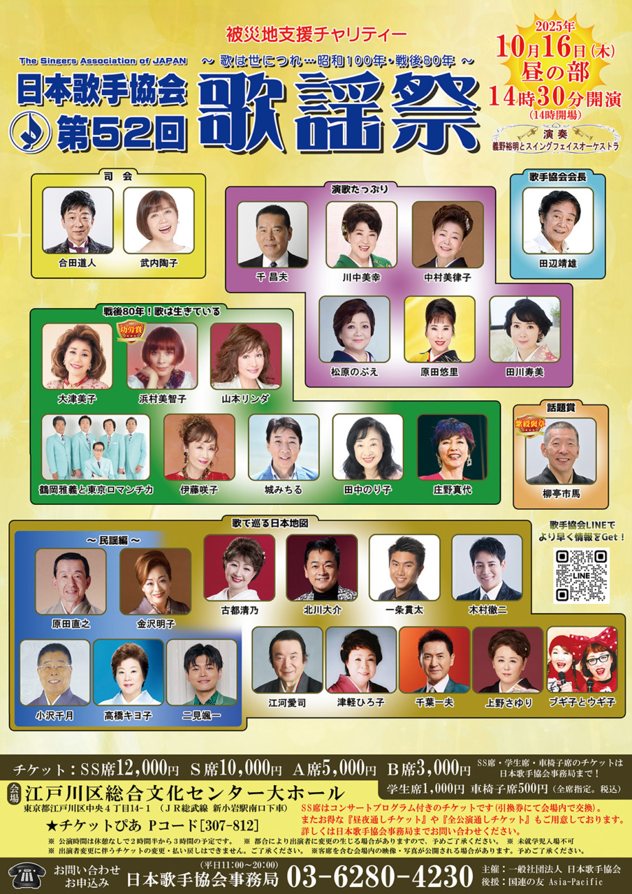 | お問い合わせ | 日本歌手協会事務局 TEL 03-6280-4230 (平日11時~20時) |